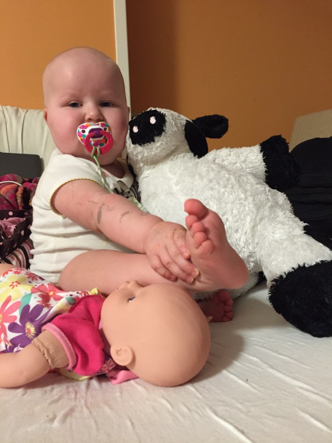 Yes, we are thrilled that Ellie is now doing outpatient chemo! I’m thankful that we only have to drive a little over an hour to get to our appointments. I’m thankful that we get to go home after a short time at the hospital! We spent about 2 1/2 hours in the van this morning and right around an hour at the Pediatric Day Unit. The staff in the PDU are great just like the rest of the medical staff we’ve had, and I believe we will get to know them really well over the next couple years. I was really impressed with their child life specialist – she welcomed us and told Ellie first thing that she had Elsa waiting for her already! Sure enough, we walked in to Ellie’s chemo room with Frozen playing on a DVD player and a really fun Elsa doll for her to…