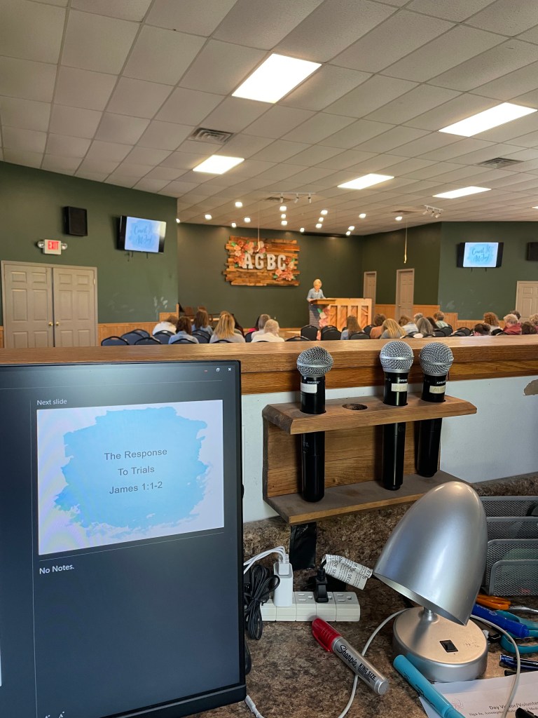 In this case, so the program director could attend to other needs at camp and Elizabeth, the coordinator of the retreat, could sit in the sessions and glean from the Word, I offered to run the power point for my wife, all the while, praying for her to be God’s useful vessel.