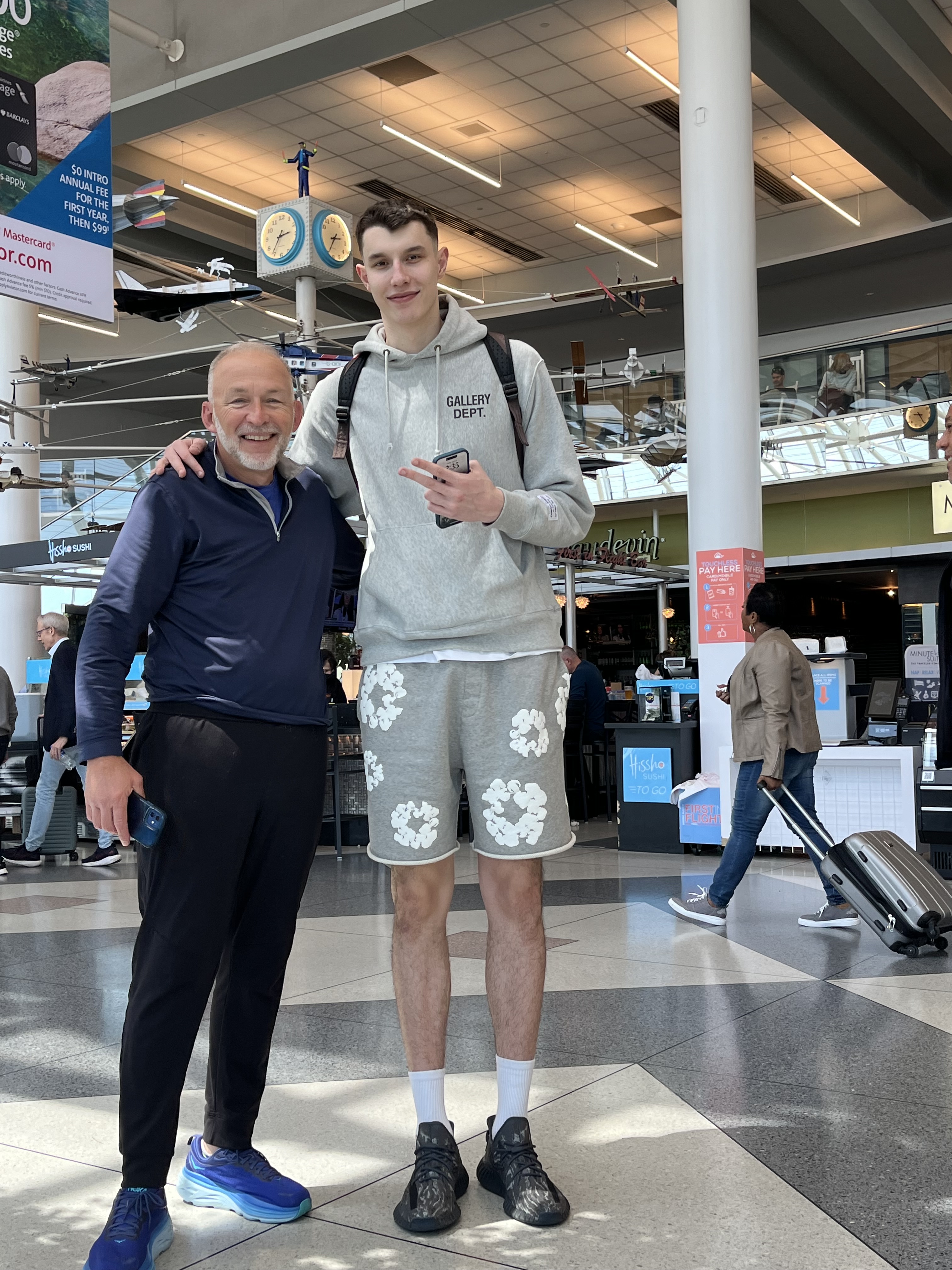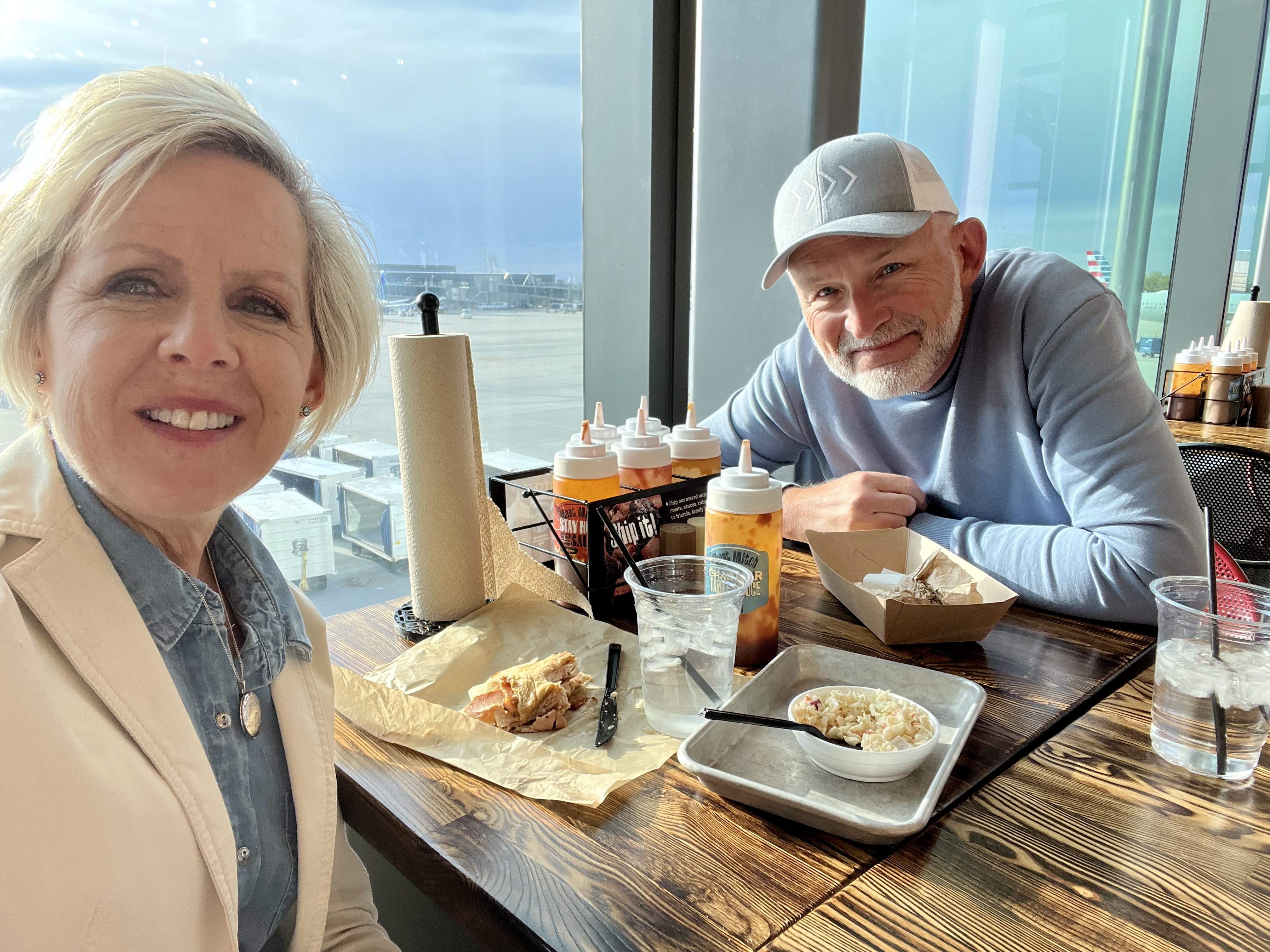 While we waited in Charlotte, Denise studied. I had the joy of meeting Zvonimir Ivišić, otherwise known as “Big Z,” who played this year for my UK Wildcats. I had passed him on our way to get lunch but didn’t stop to speak to him. When he passed by the second time, Denise alerted me, and I jumped up from my chair to meet him. Standing 7’1”, I felt really small!! Although he is transferring to Arkansas to play for Coach Cal, it was fun to meet him.