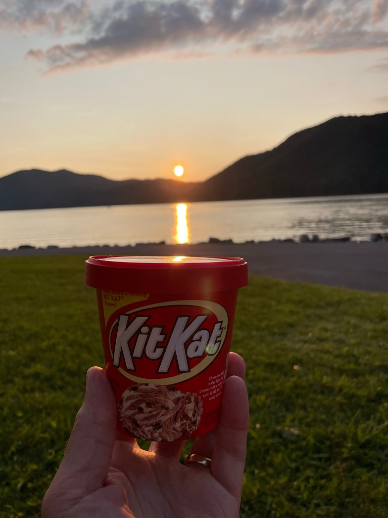 The selection as stated by my wife was mint chocolate chip or something chocolatey. Well, the choices were slim, so Kit Kat Bar ice cream was it. Hey, it’s ice cream. That’s all that matters, right?